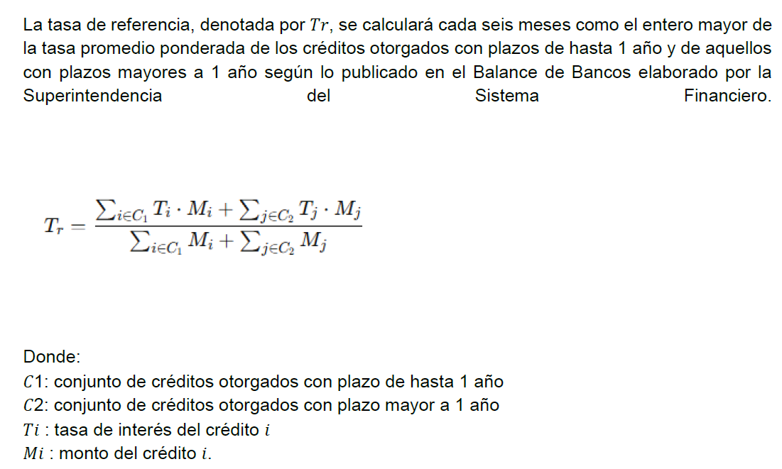 La tasa de referencia es una tasa de interés única expresada en porcentaje, que hace referencia a las operaciones de préstamos en moneda nacional.